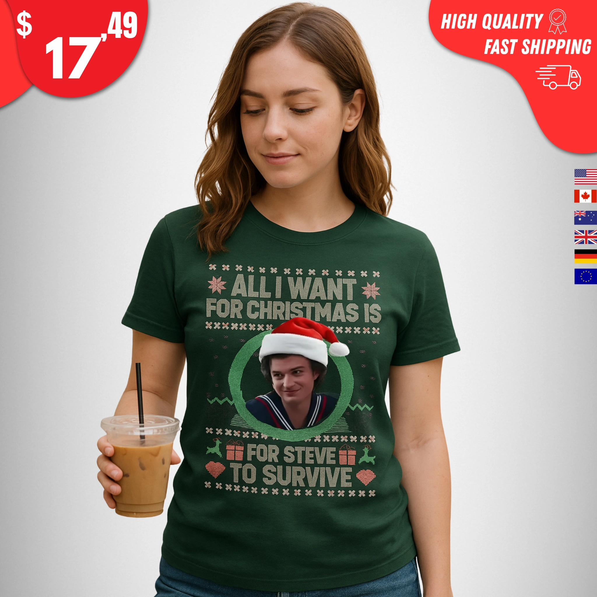 With a relaxed unisex fit and festive, fandom-inspired design, this Steve Harrington Christmas shirt is ideal for holiday parties, binge-watching marathons, ugly sweater nights, or December rewatch sessions with your favorite chaos crew. Pair it with jeans, plaid pajama pants, or a cozy cardigan for peak “Hawkins but make it Christmas” energy.