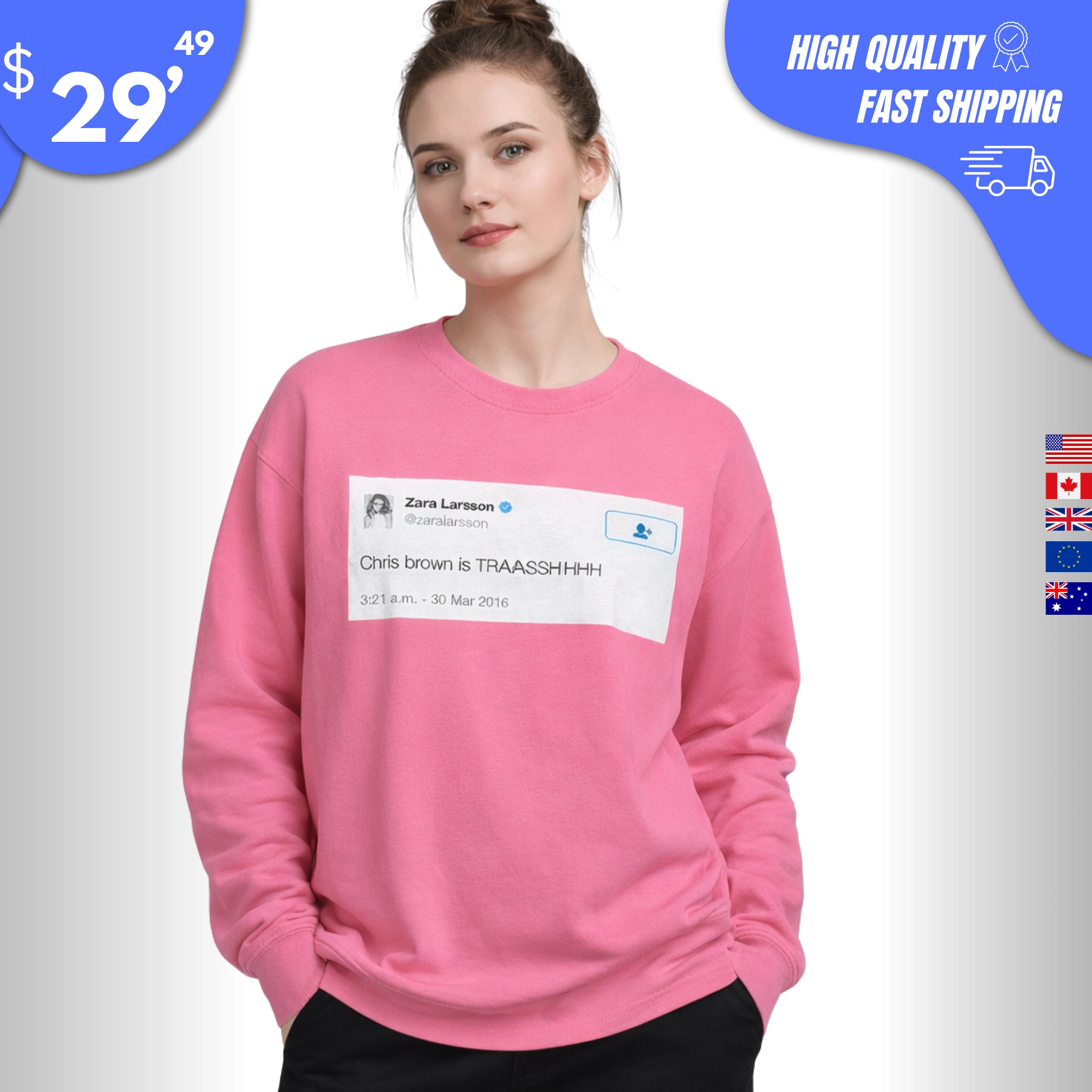 The Chris Brown is Trash Shirt immortalizes one of the most unapologetic fashion statements in recent pop-culture history. Originally worn by Swedish pop star Zara Larsson, this graphic tee features the iconic, elongated “TRAAASSHHHHH” text that turned a simple mirror selfie into a worldwide viral moment.