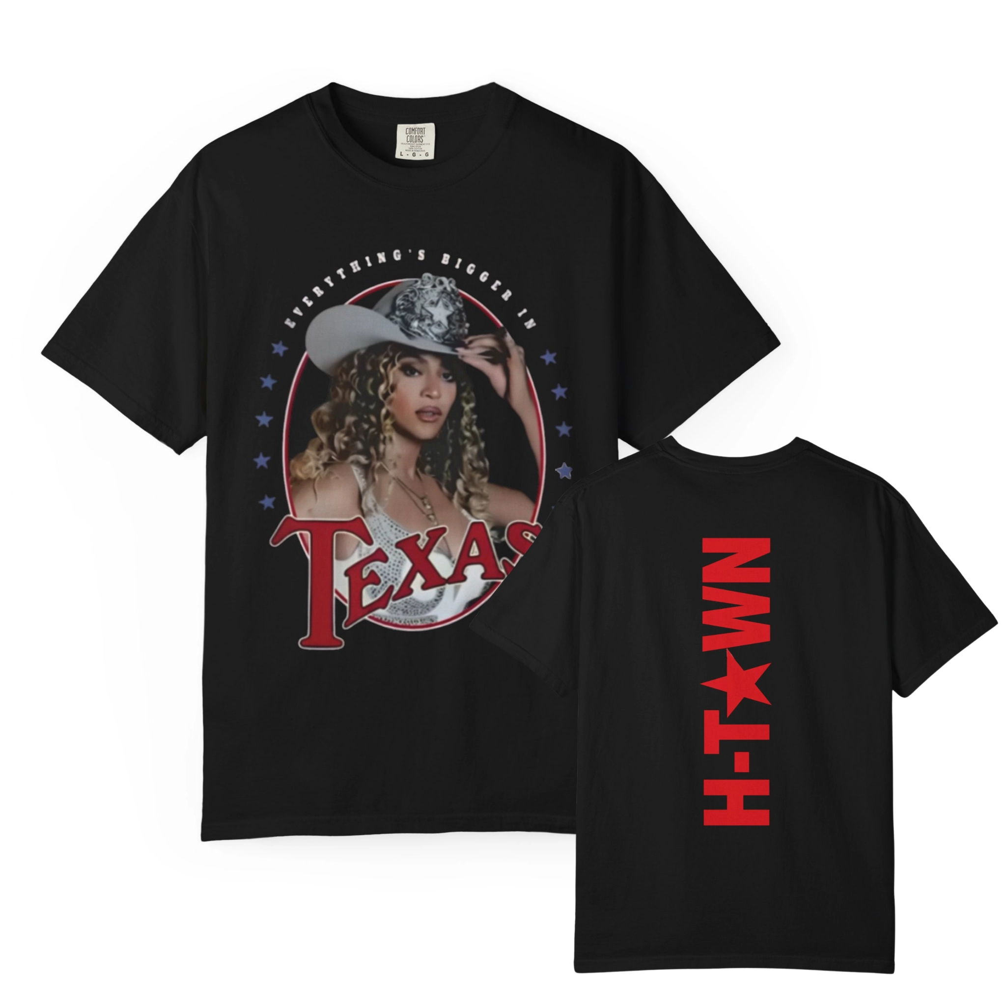 This shirt features a cheeky and fabulous slogan that celebrates the iconic Texas phrase “Everything’s Bigger in Texas” with a tribute to Houston’s own Beyoncé. Whether you’re a Yeehaw Queen or just obsessed with fierce female power, this tee brings the perfect mix of Southern flavor and pop royalty attitude.