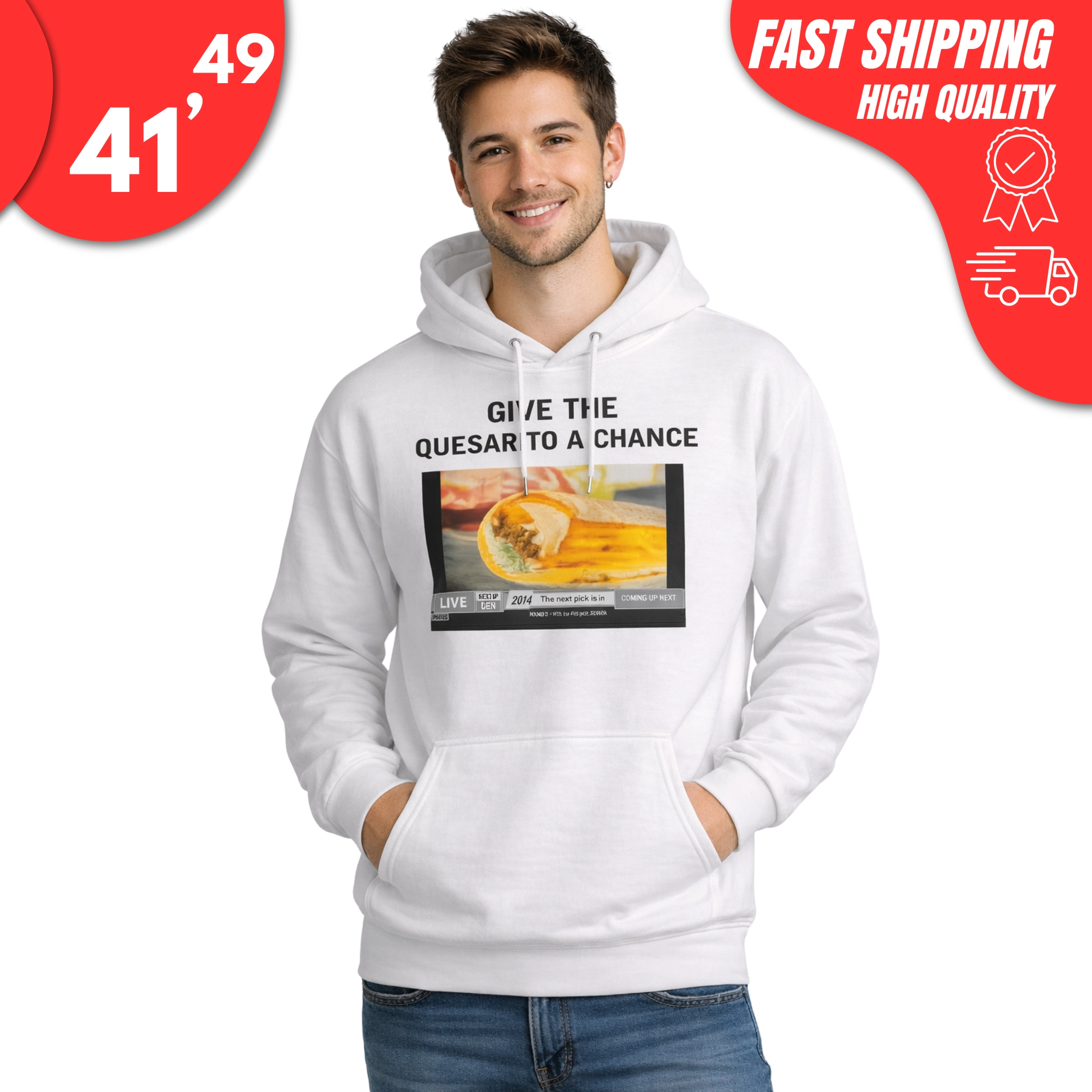 Hilarious “Give The Quesarito A Chance” slogan with faux fast-food ad graphic