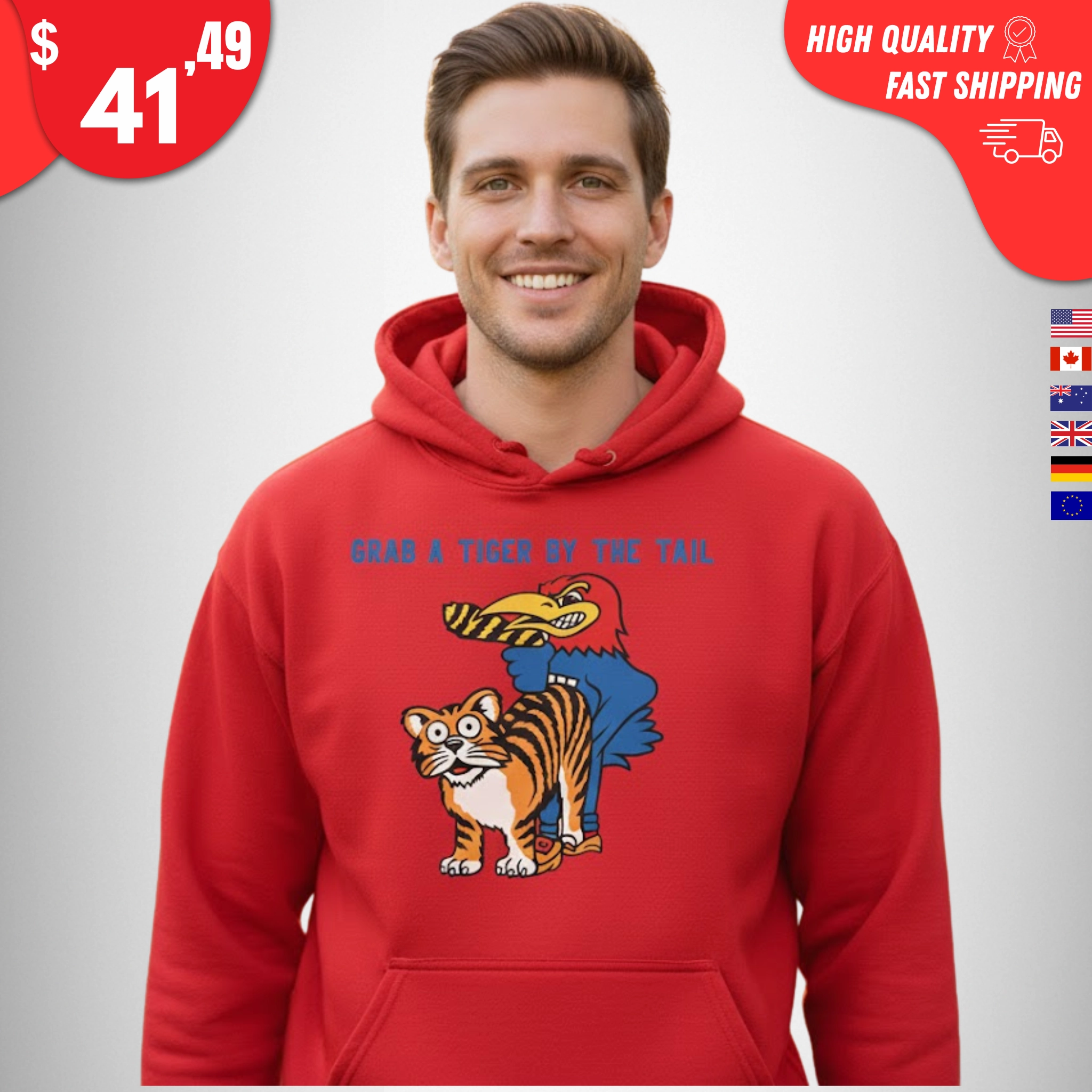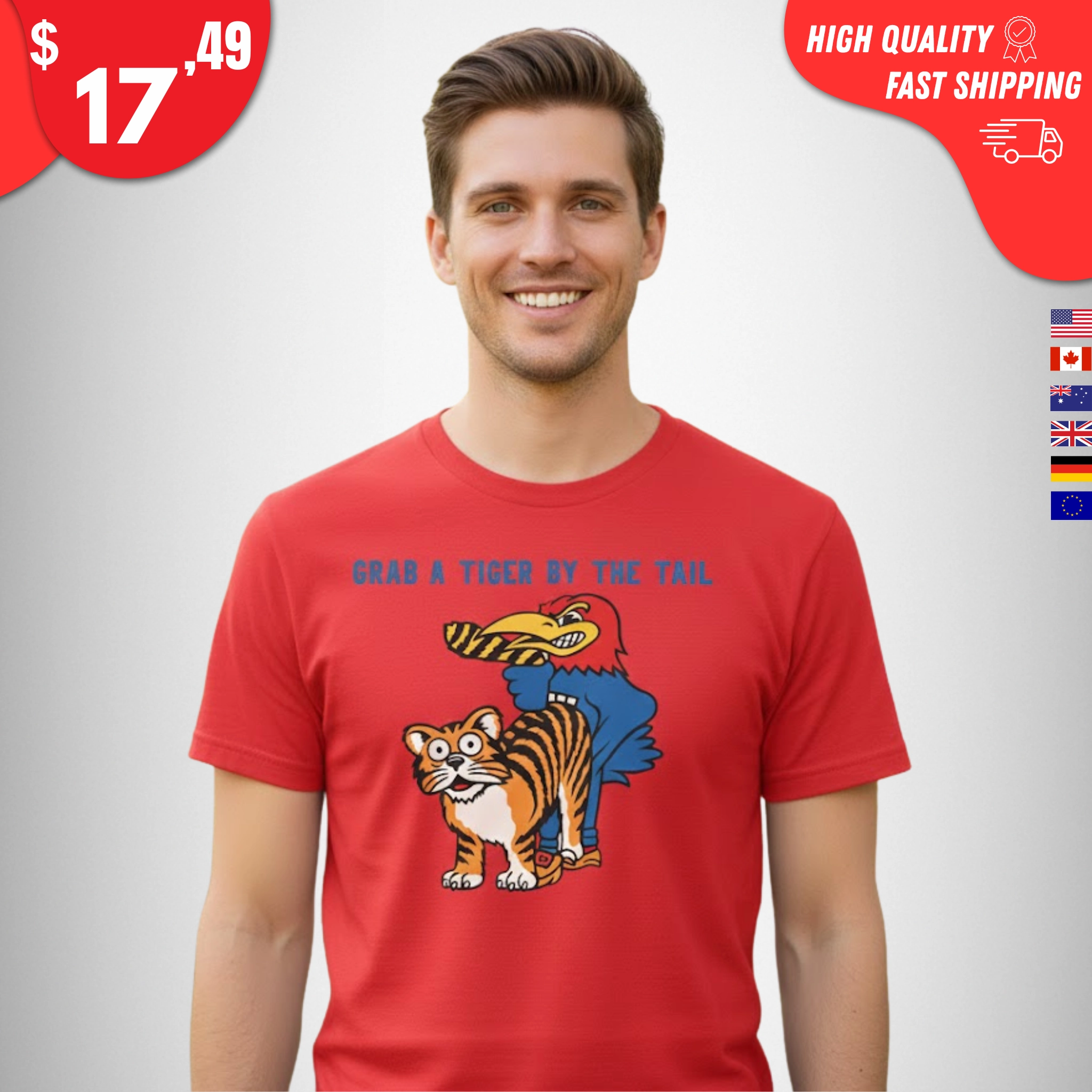 The Grab a Tiger By the Tail Shirt is a must-have for Jayhawks who love Scot Pollard, hate Mizzou, and live for rivalry smack talk.