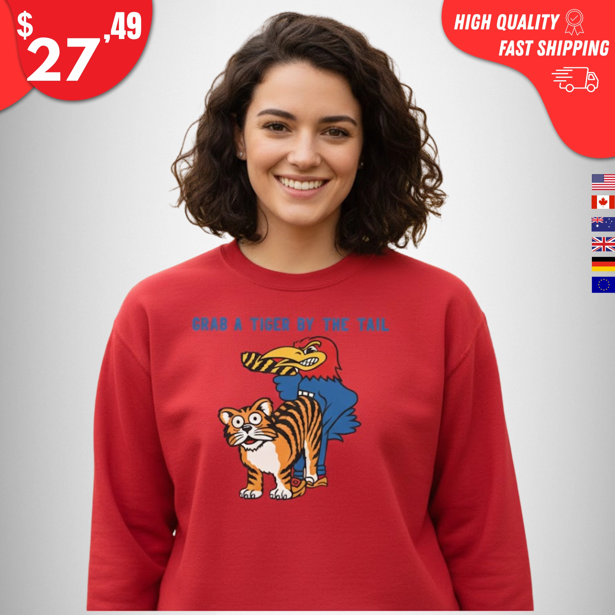 The Grab a Tiger By the Tail Shirt is perfect for Kansas fans who still feel some type of way about the old KU–Mizzou rivalry. Inspired by former Jayhawk Scot Pollard rocking this tee and saying the rivalry may have lost some luster when the Tigers left the conference—but he still wants Kansas to beat them badly every time—this shirt is pure, vintage trash-talk energy wrapped in crimson and blue.