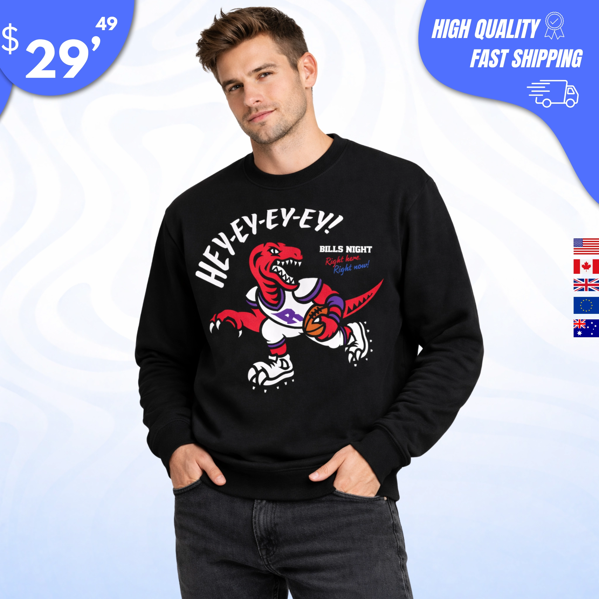 The Hey Ey Ey Ey Bills Night Shirt captures one of those electric crossover moments sports fans live for. During a high-energy Bills Night celebration, the arena chant echoed loud and proud — “Hey-Ey-Ey-Ey!” — blending football spirit with basketball culture. As the Toronto Raptors crowd embraced the hype, the moment quickly spread across social media, turning a simple chant into a viral fan statement.