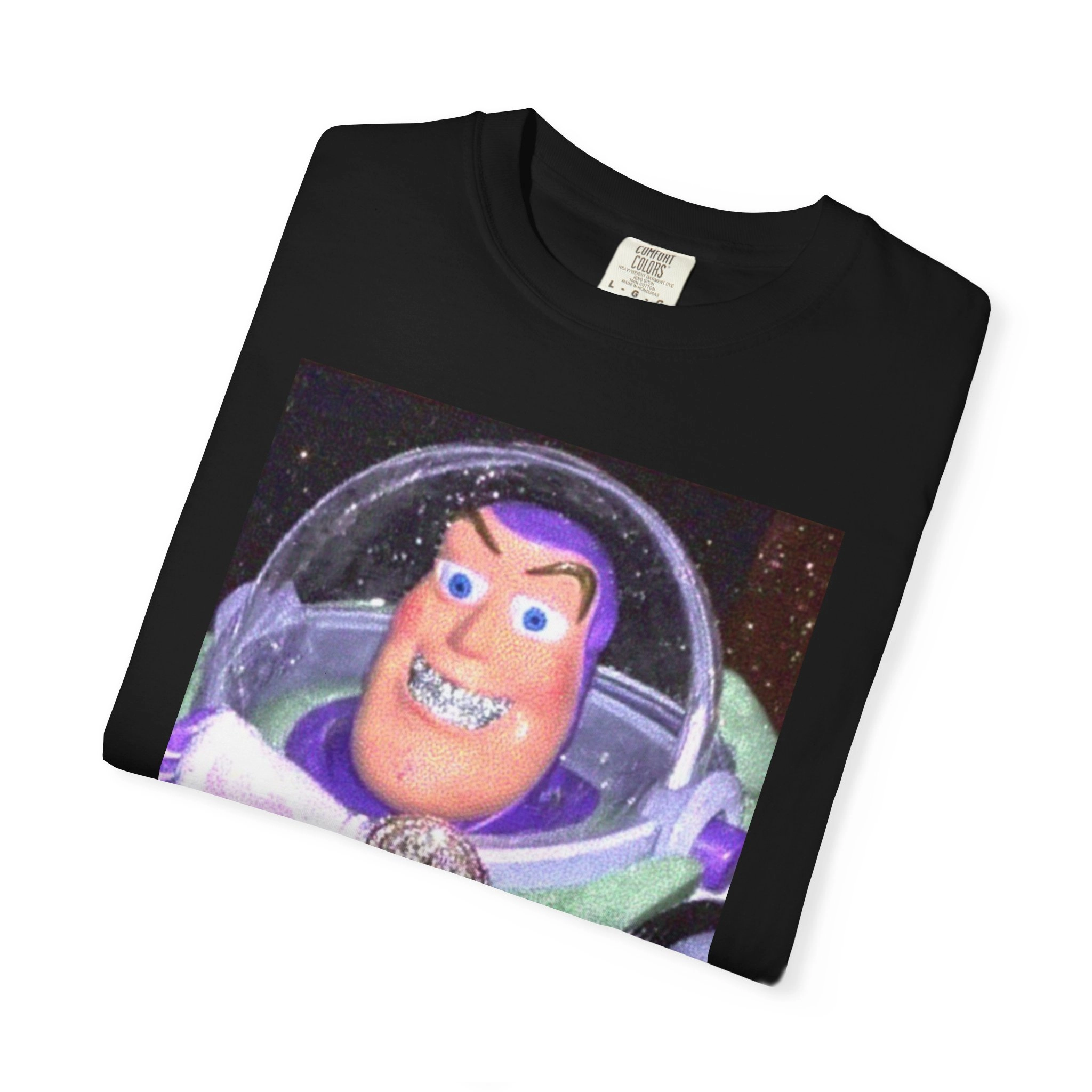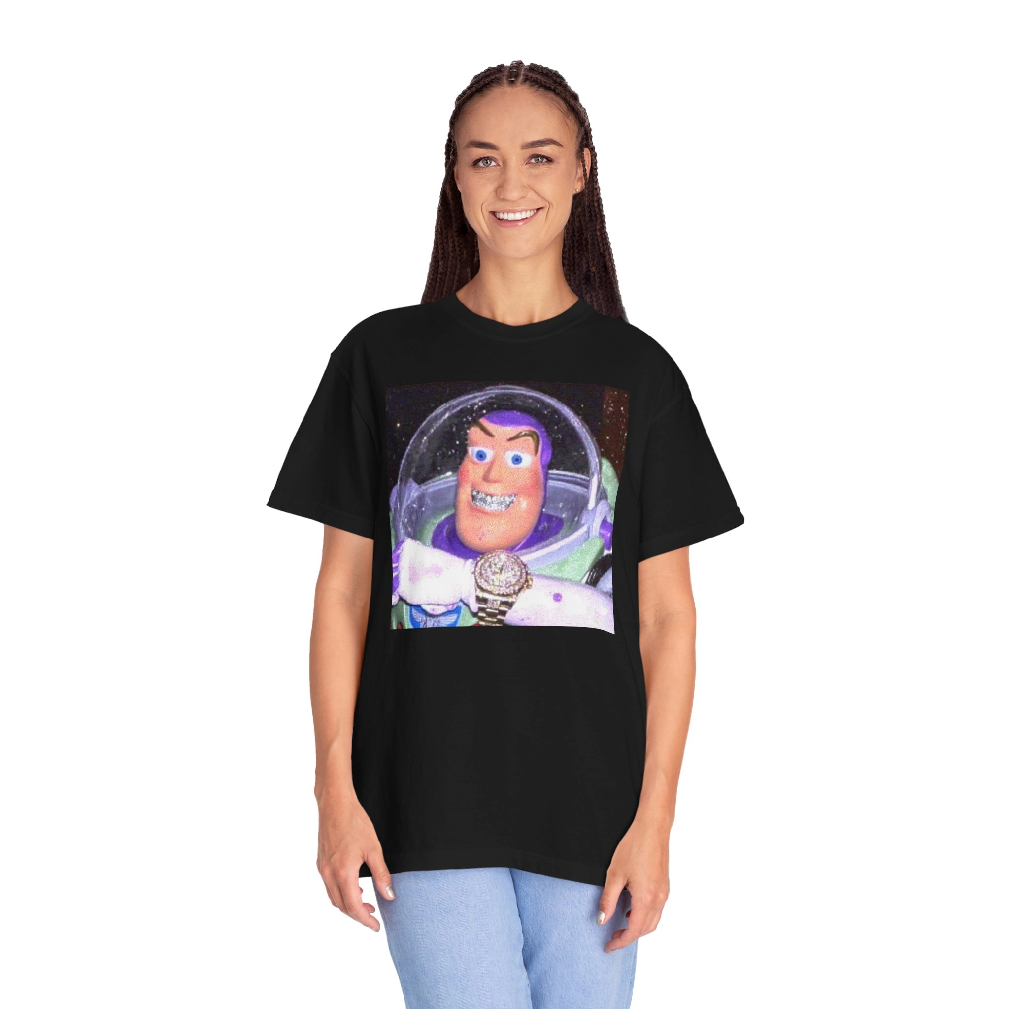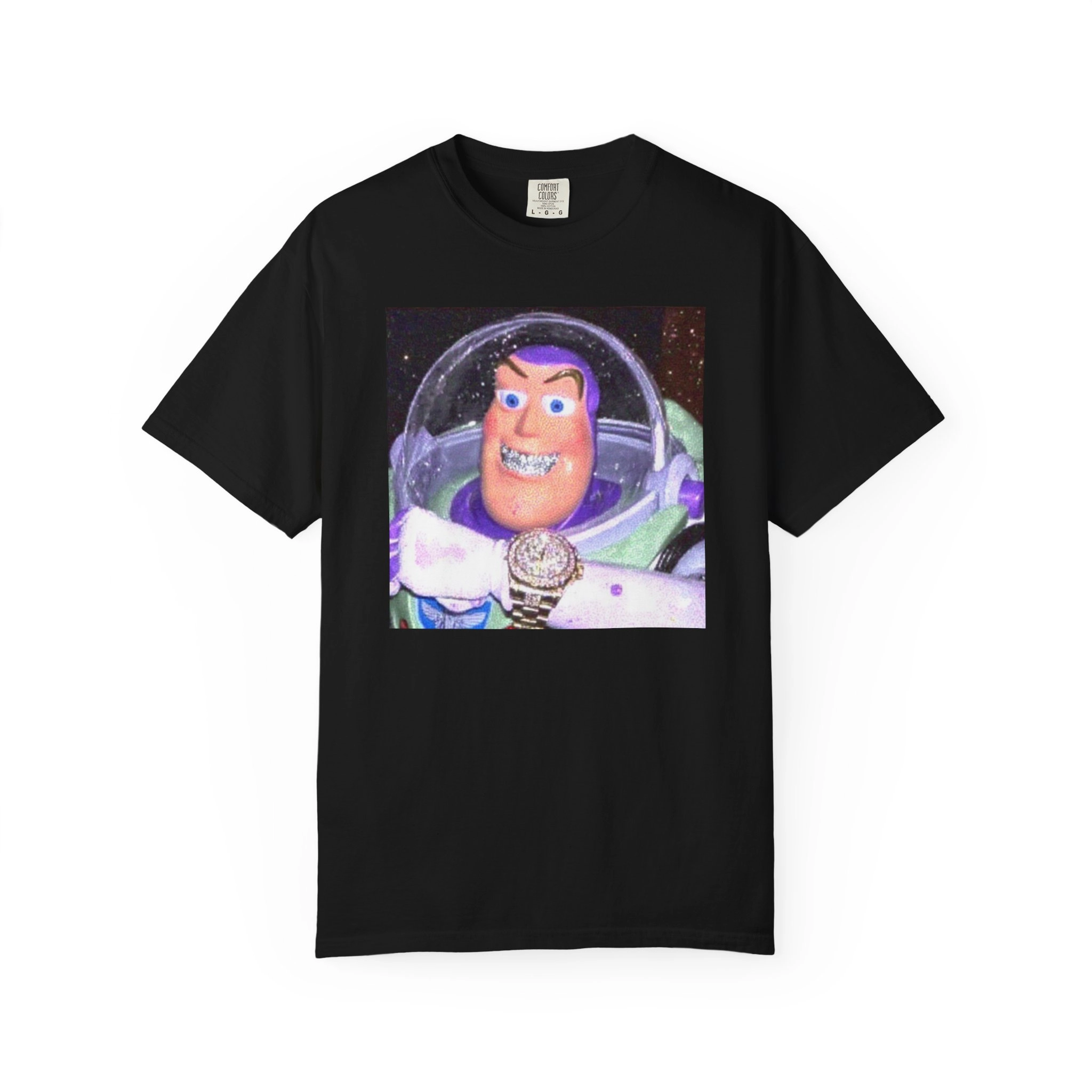 Made from soft, high-quality cotton and polyester, this tee is designed to last—just like your childhood love for space heroes and chaotic memes. It comes in multiple sizes and colors, so you can customize your cosmic look.
