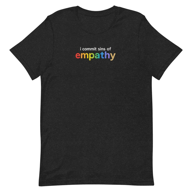 Wear your I Commit Sins of Empathy Shirt with pride and be part of a community that values compassion, inclusivity, and love. Let your clothing reflect your commitment to making the world a more understanding and accepting place.
