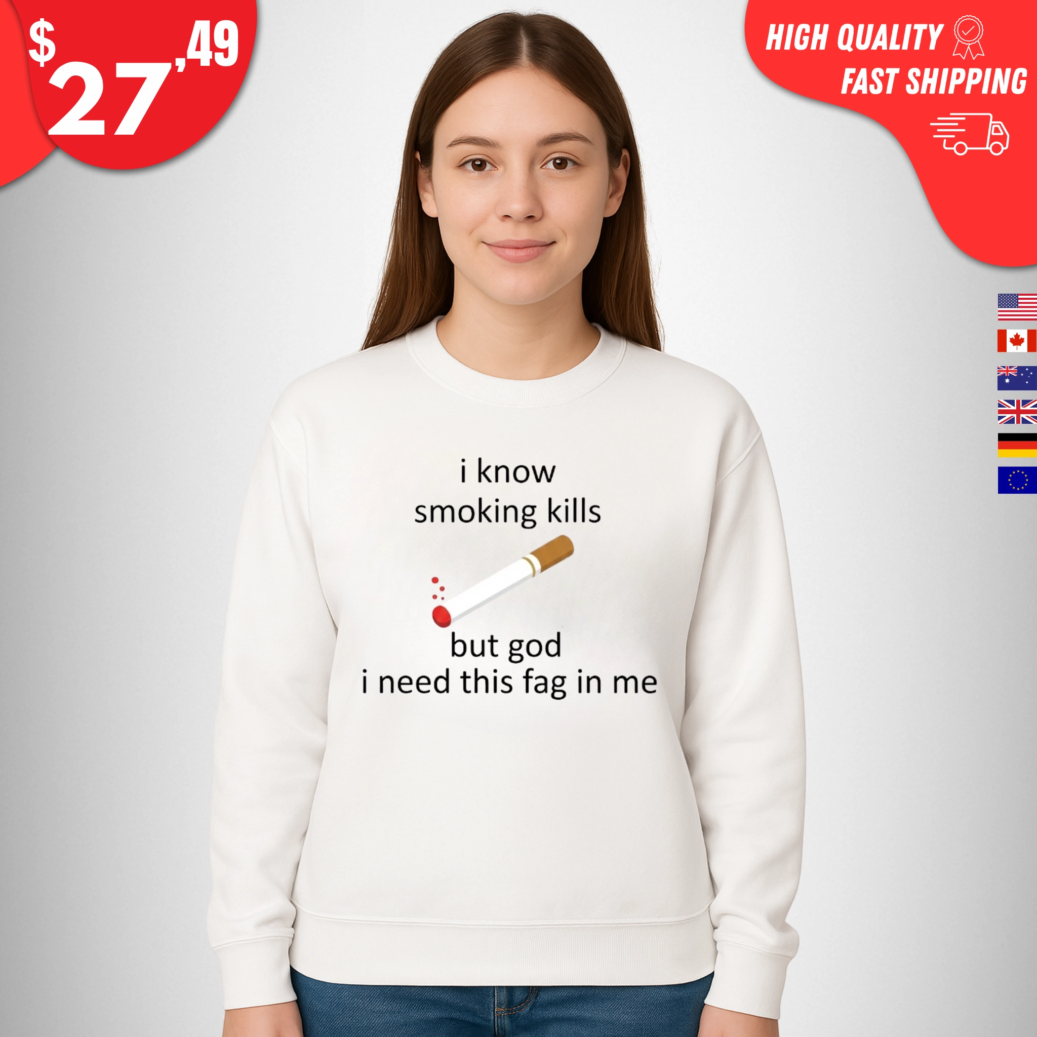 Whether you’re a longtime smoker, an ex-smoker with a twisted sense of humor, or just someone who loves edgy meme-style tees, the I Know Smoking Kills But God I Need This Fag In Me Shirt is made for people who are fully aware of the warning label and still cracking jokes about it.