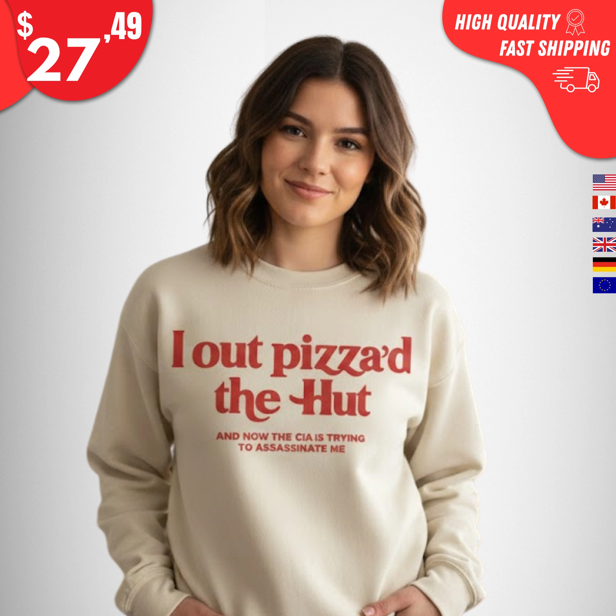 The I Out Pizza’d the Hut Shirt is made for people whose sense of humor lives somewhere between cursed memes, edge-lord comedy, and late-night conspiracy jokes. Playing on the classic pizza slogan with a dark twist, this CIA assassination joke tee turns a ridiculous phrase into a chaotic, conversation-starting graphic.