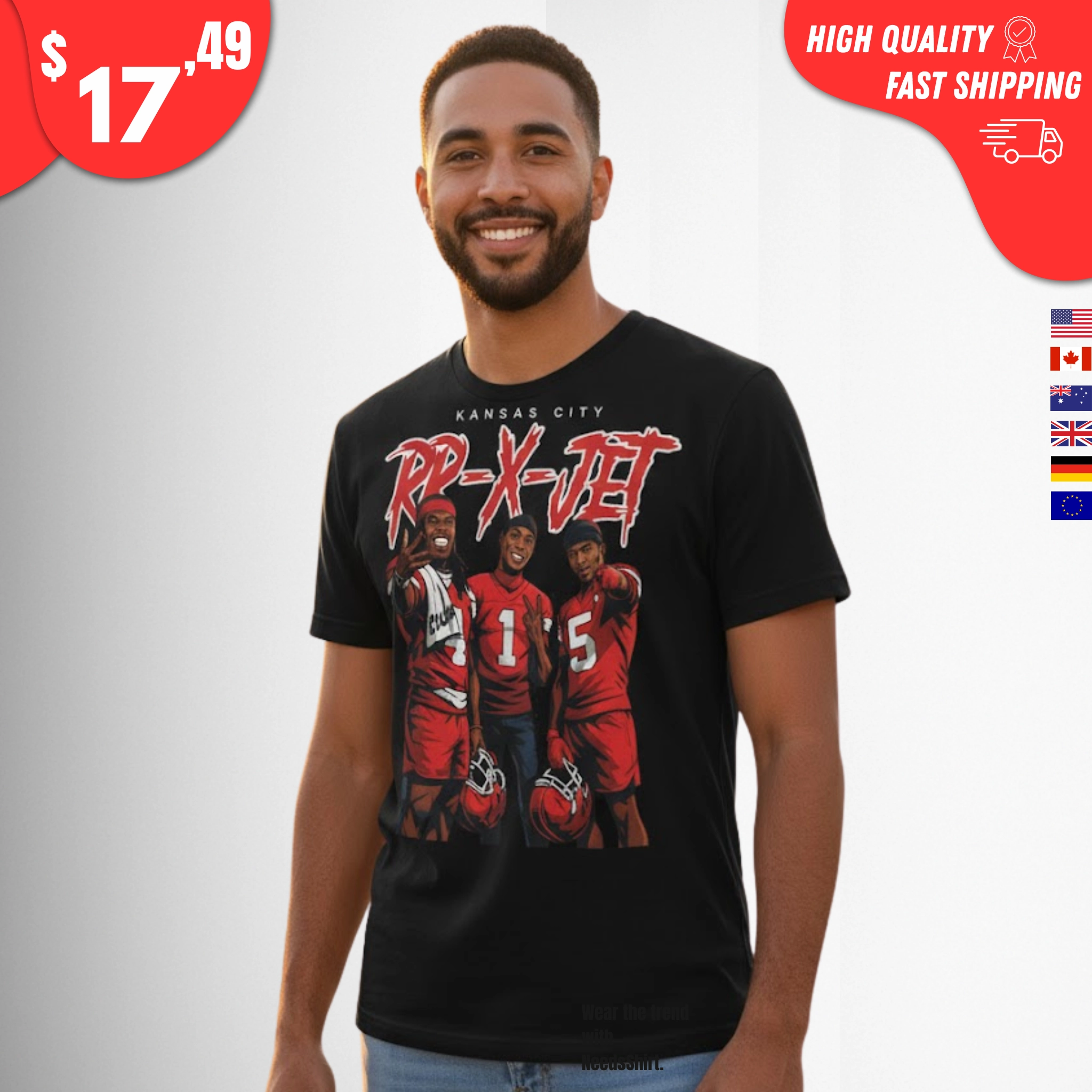 The Kansas City RR-X-JET Shirt celebrates the explosive energy and unstoppable offense that define Kansas City football. Inspired by the team’s dynamic playstyle — full of motion, speed, and precision — this tee embodies the heart of the RR-X-JET formation: fast, smart, and impossible to stop.