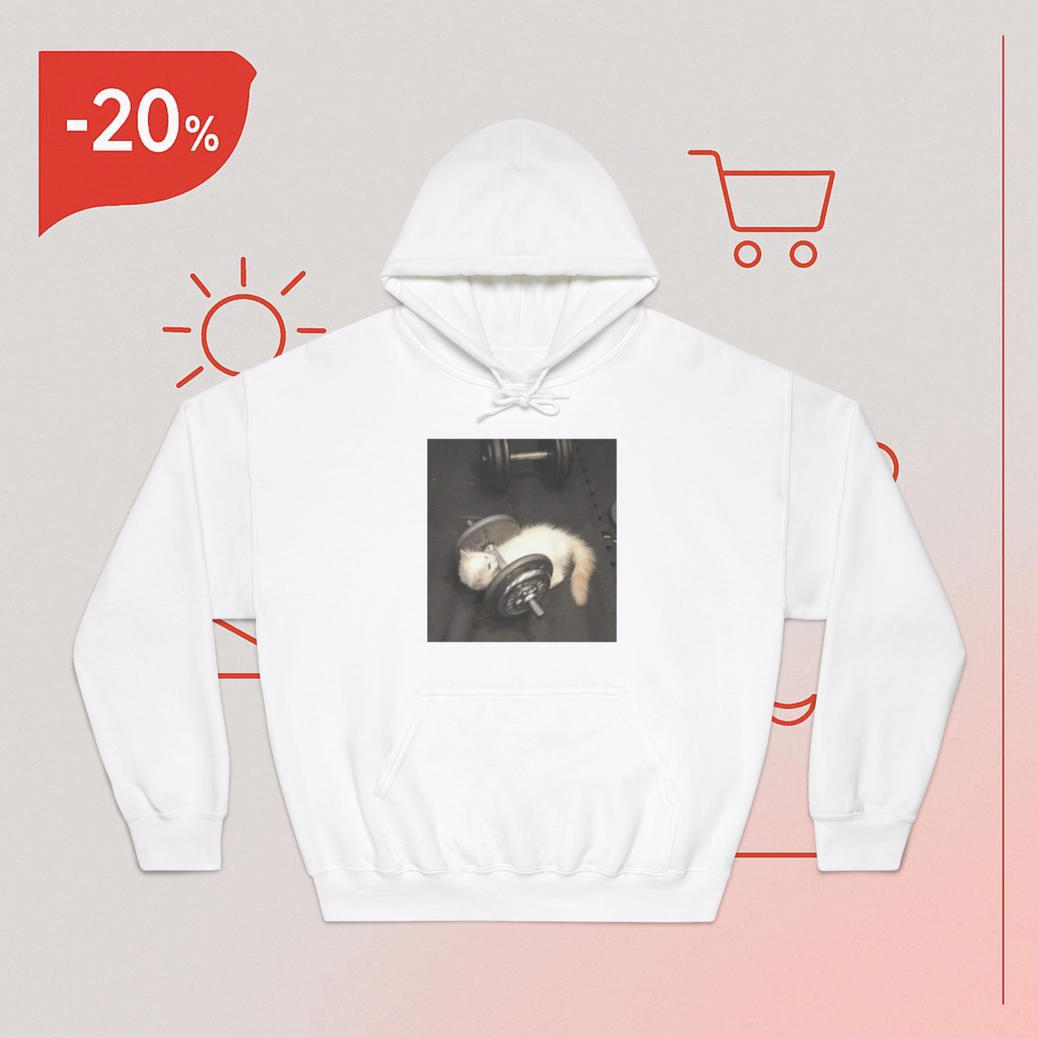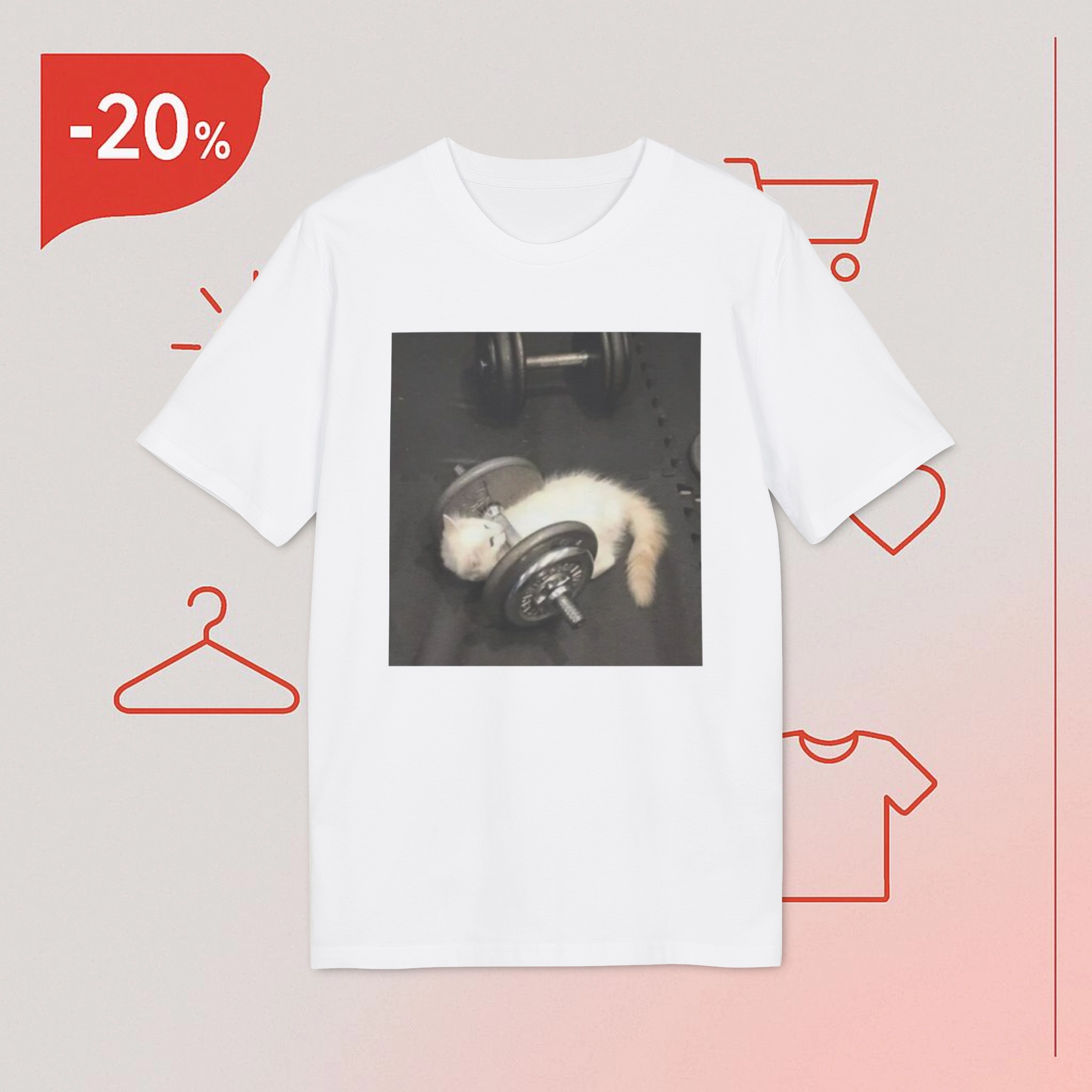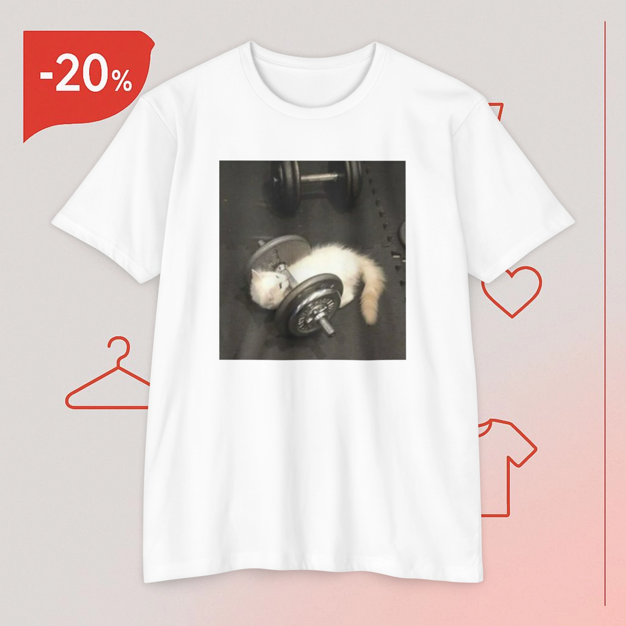 Adorable Design: Featuring a cartoon cat giving its best effort on the bench press, this shirt combines cuteness with a dash of determination.