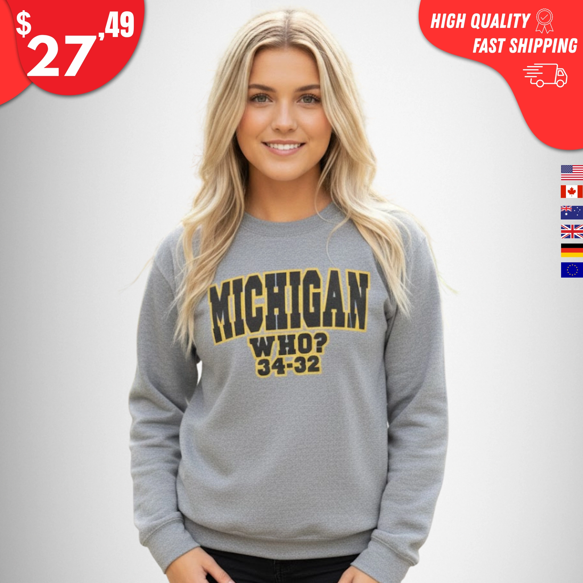 The Michigan Who 34-32 Shirt is made for college football fans who never get tired of reminding people about one of the most shocking upsets in history. With a bold “34–32” score front and center, this tee is a loud, petty, and perfectly satisfying way to celebrate the underdog proving everyone wrong.