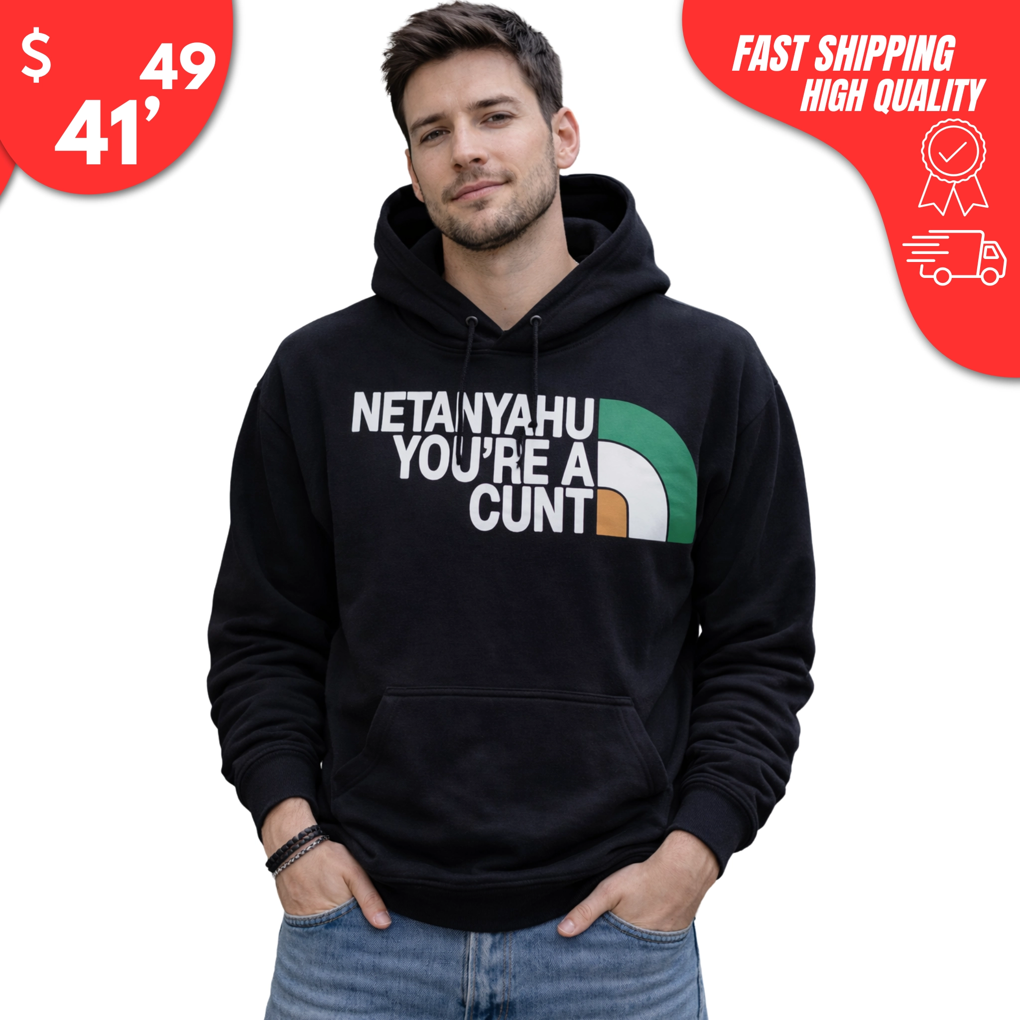 This shirt isn’t about subtlety — it’s about standing firm, speaking out, and using satire as resistance. If you believe fashion can be a form of protest, the Netanyahu You’re a Cunt Shirt was made for you.