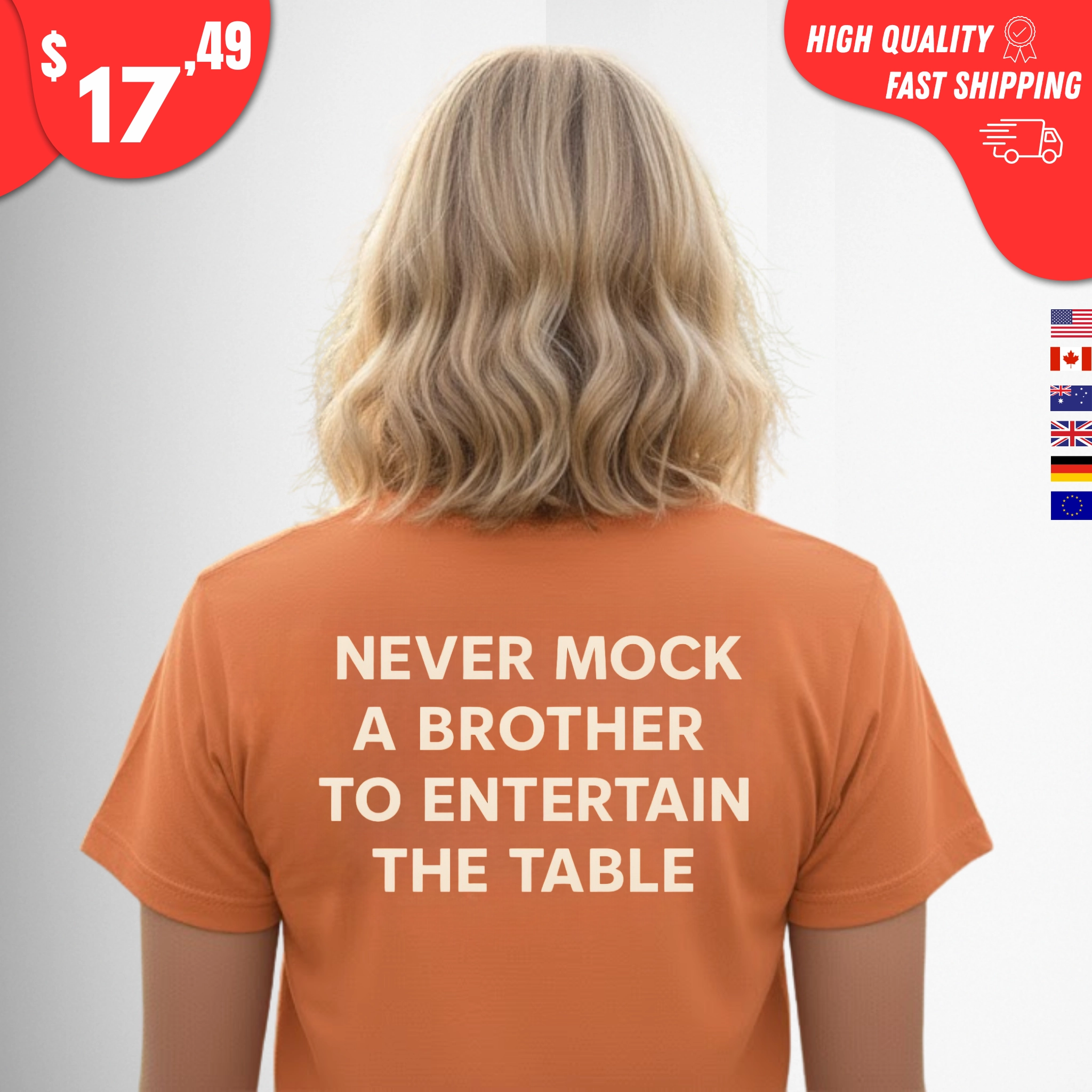 Because real strength isn’t in mockery — it’s in respect. The Never Mock a Brother to Entertain the Table Shirt says what too many forget to.