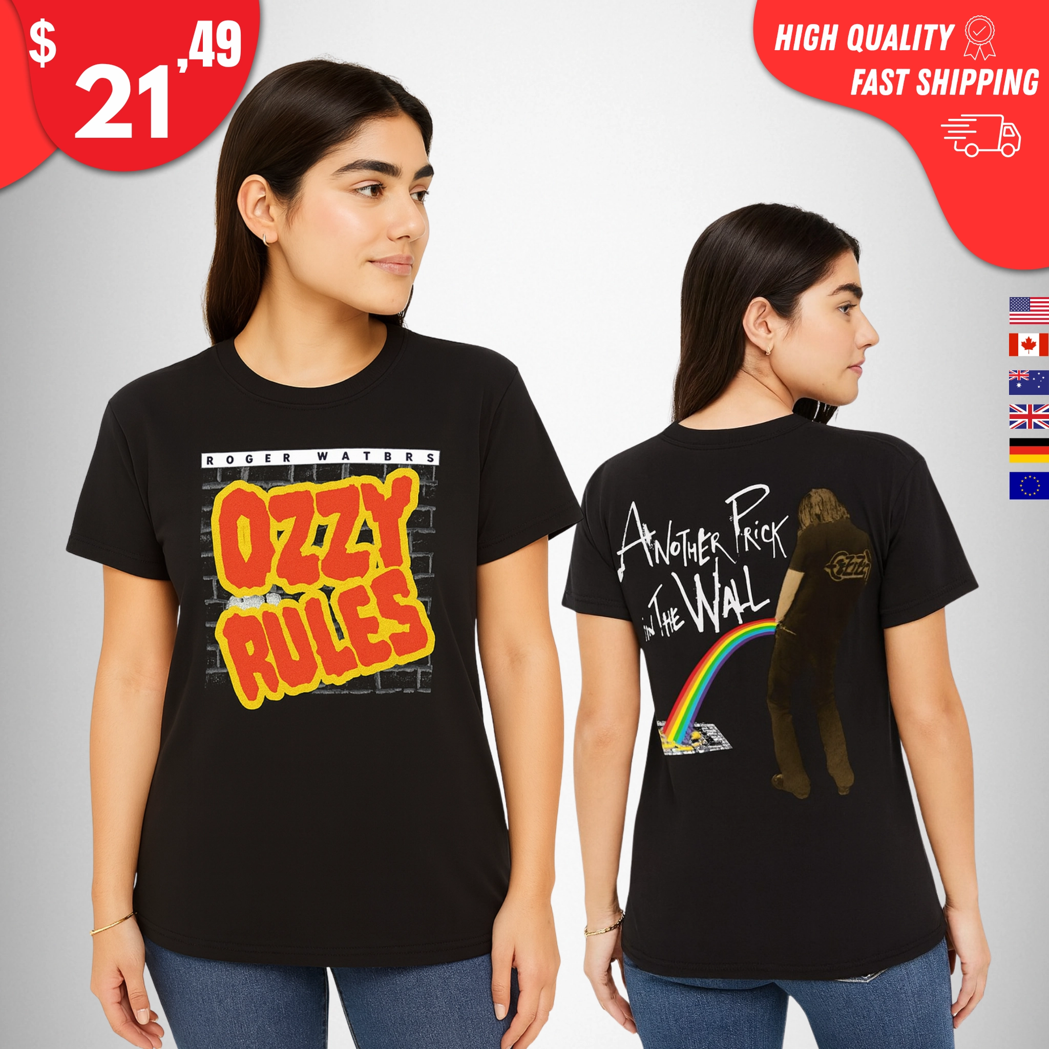 Just like the real-life drop that referenced The Wall with “Another Prick in the Wall” and graffiti-style “OZZY RULES” sprayed over Waters’ name, this Ozzy Roger Waters shirt leans into brick-wall, street-art, and classic rock iconography. It’s the perfect combo of parody, payback, and pure rock ’n’ roll attitude.