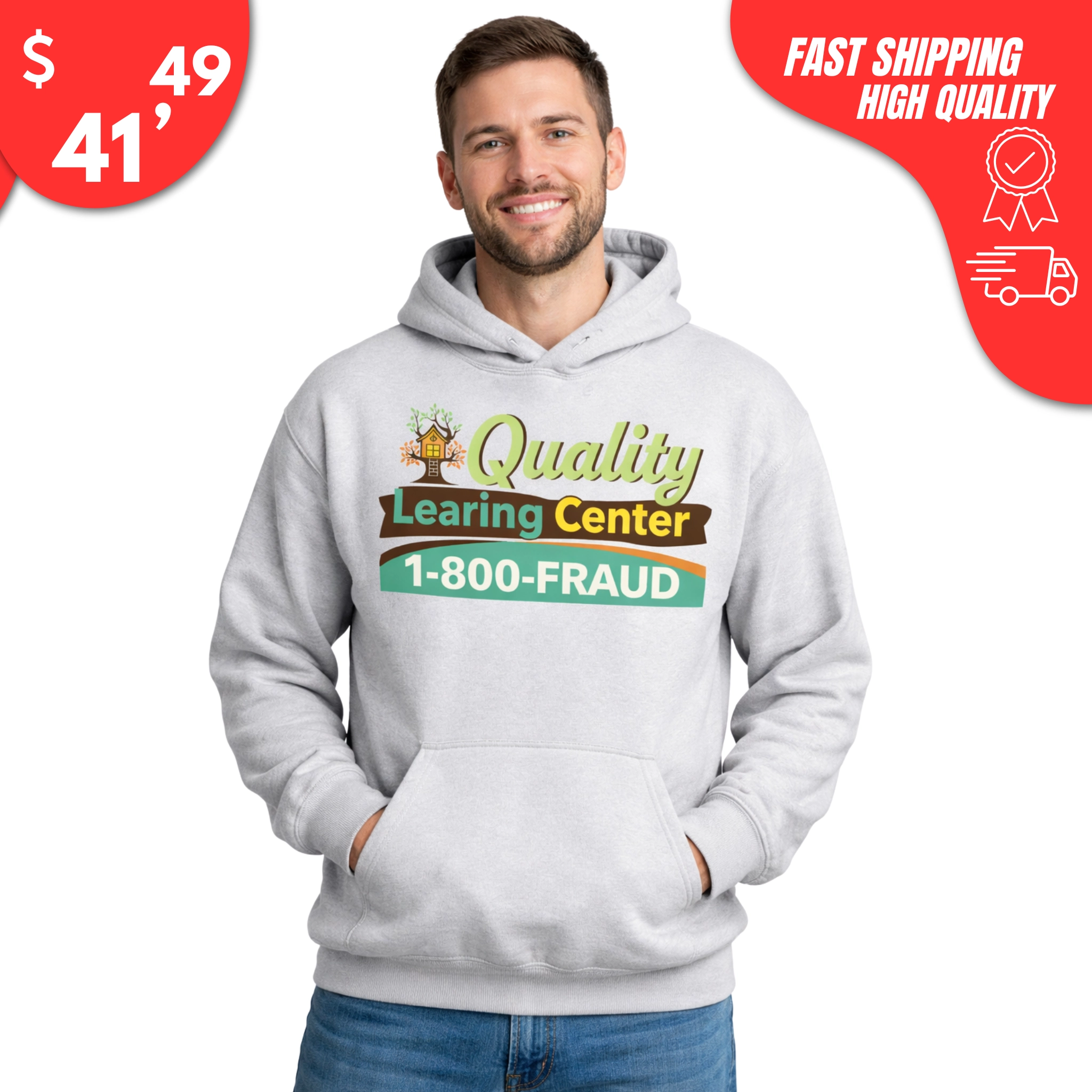 Parody “Quality Learning Center” design with 1-800-Fraud text