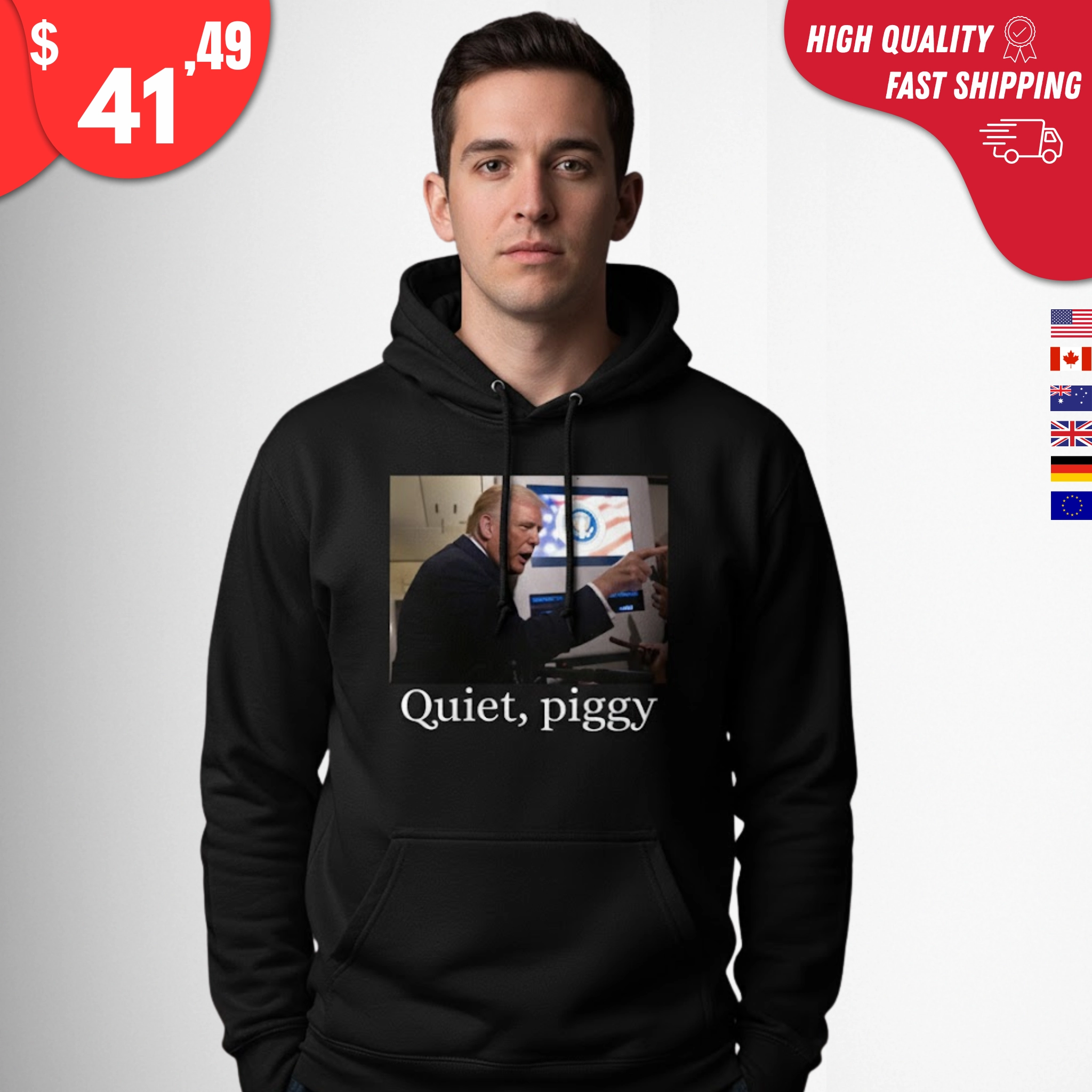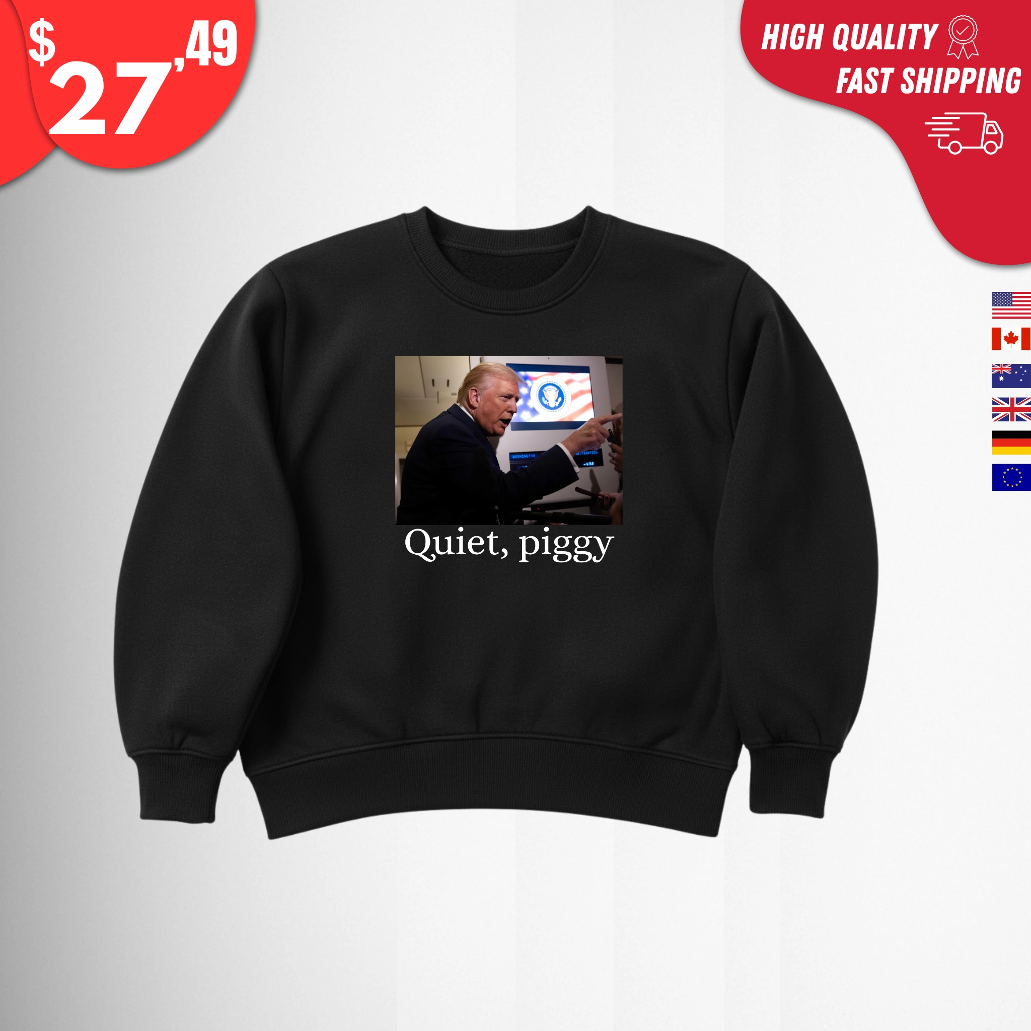 Whether you follow politics seriously or simply love collecting internet-breaking moments, the Quiet Piggy Trump Shirt is a piece of 2025 history you can actually wear.