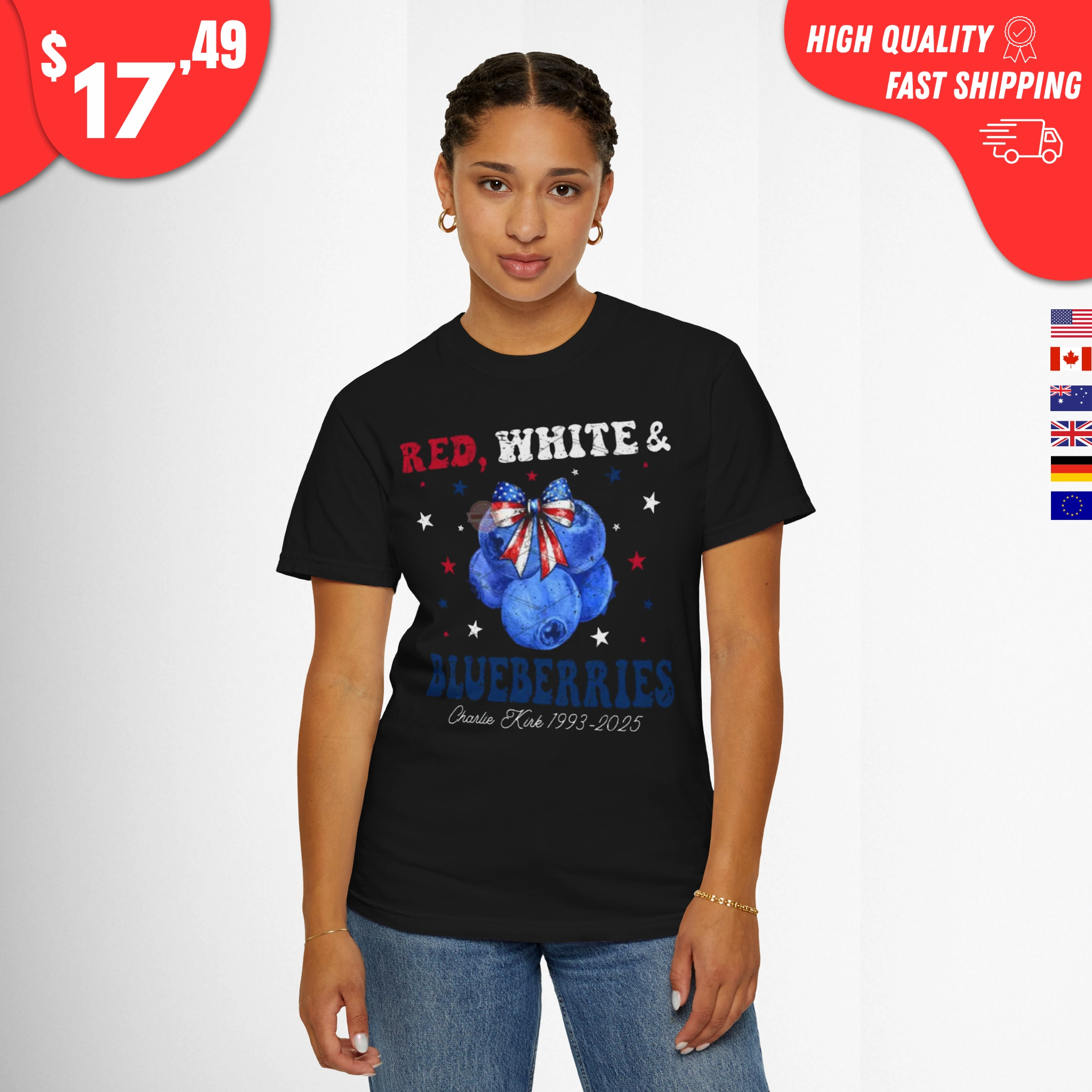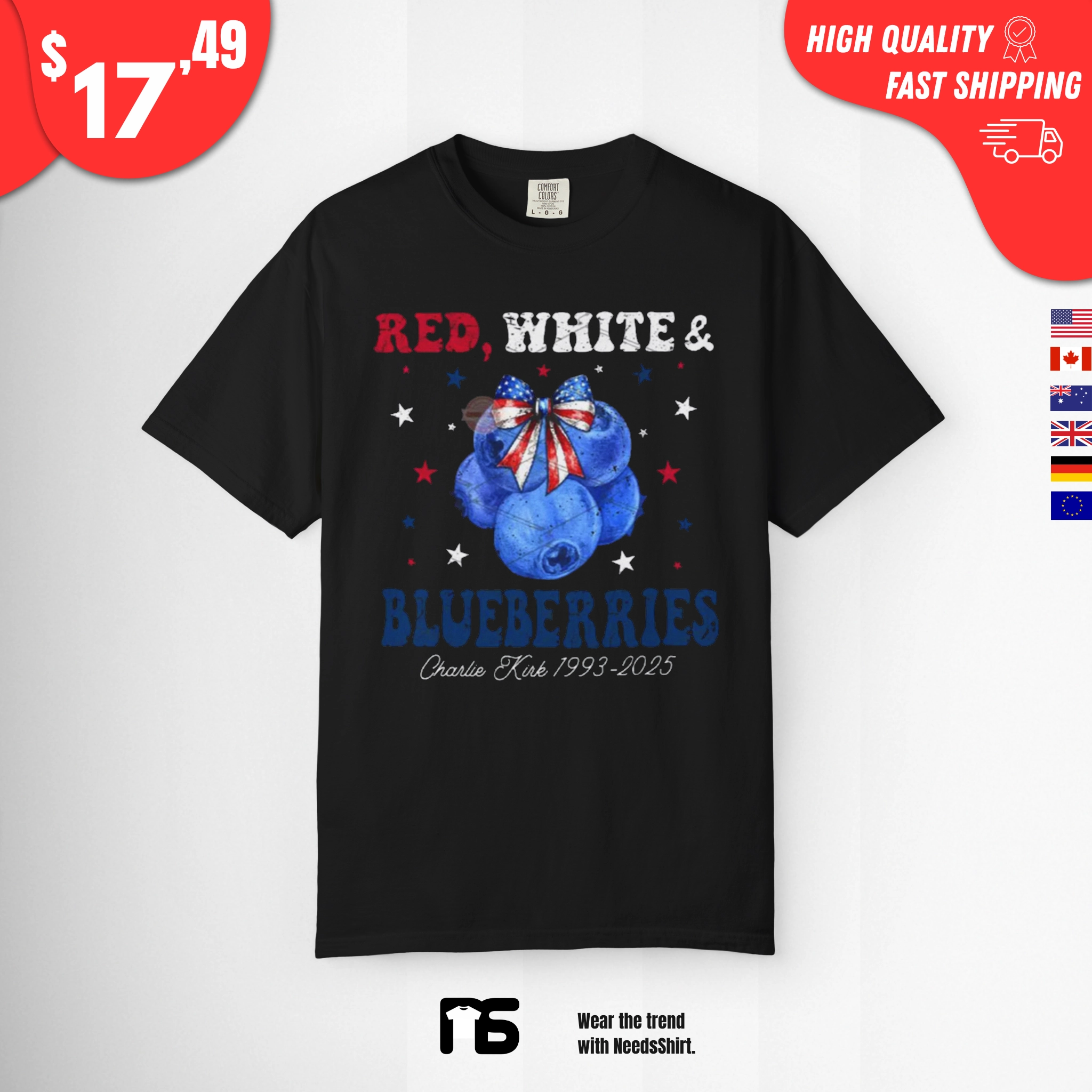 Red White and Blueberries Shirt – Charlie Kirk memorial Tee