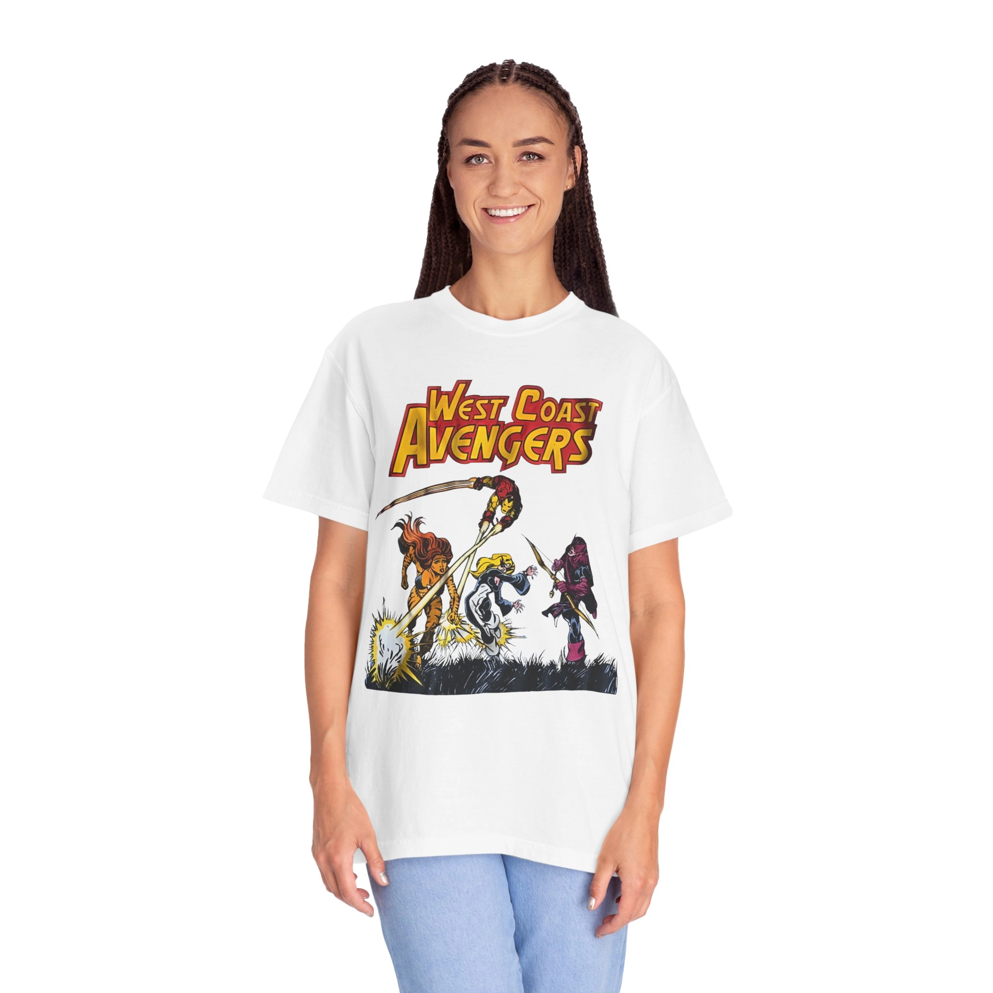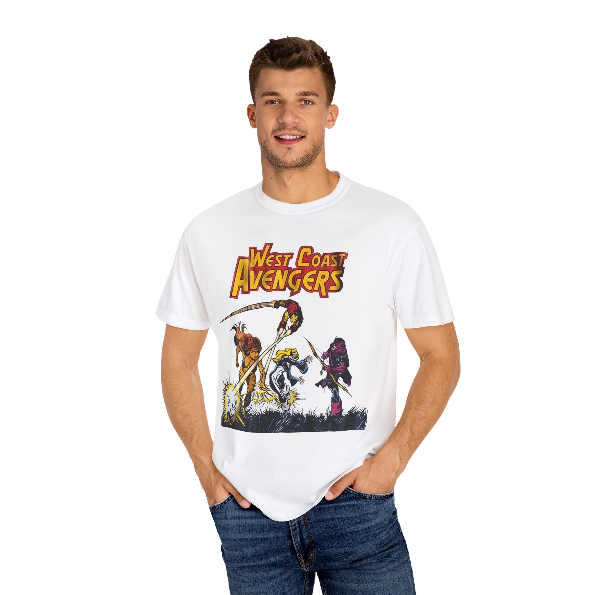 Featuring your favorite second-string (but first-in-our-hearts) heroes like Hawkeye, Vision, Scarlet Witch, and Wonder Man, this shirt taps into pure ‘80s Marvel glory. Whether you grew up reading the comics or just love a solid throwback, this tee blends geek pride with vintage style.