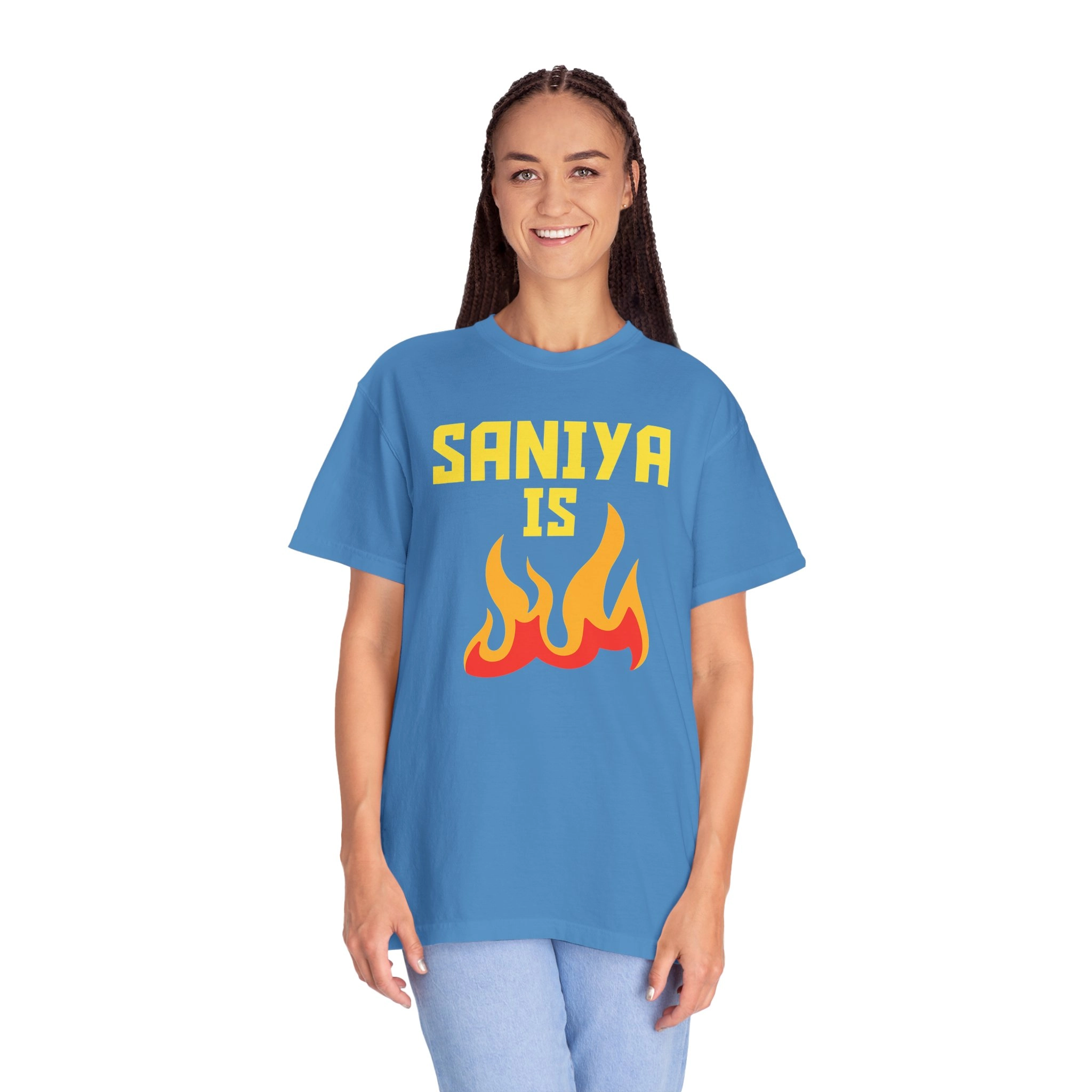 Don’t miss your chance to own the hottest shirt of the year. Order your Saniya Is Fire Shirt today and let the world feel your flames.