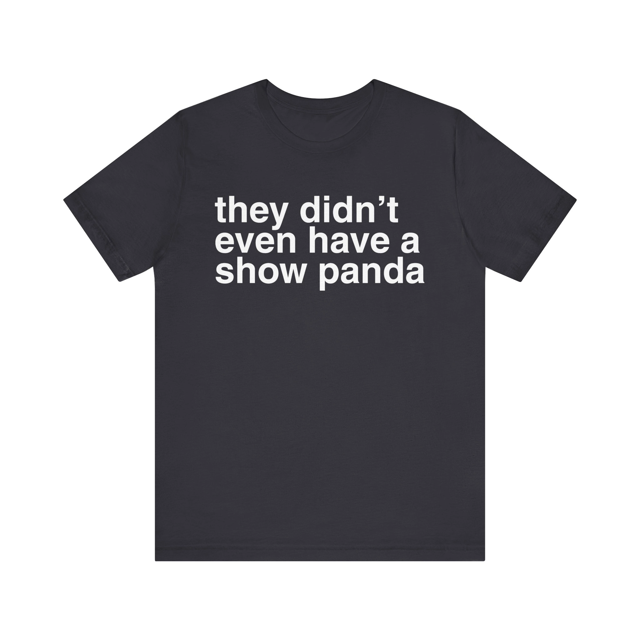 Don’t miss out on this unique piece of apparel. Order your They Didn’t Even Have a Show Panda shirt today and let your shirt do the talking!