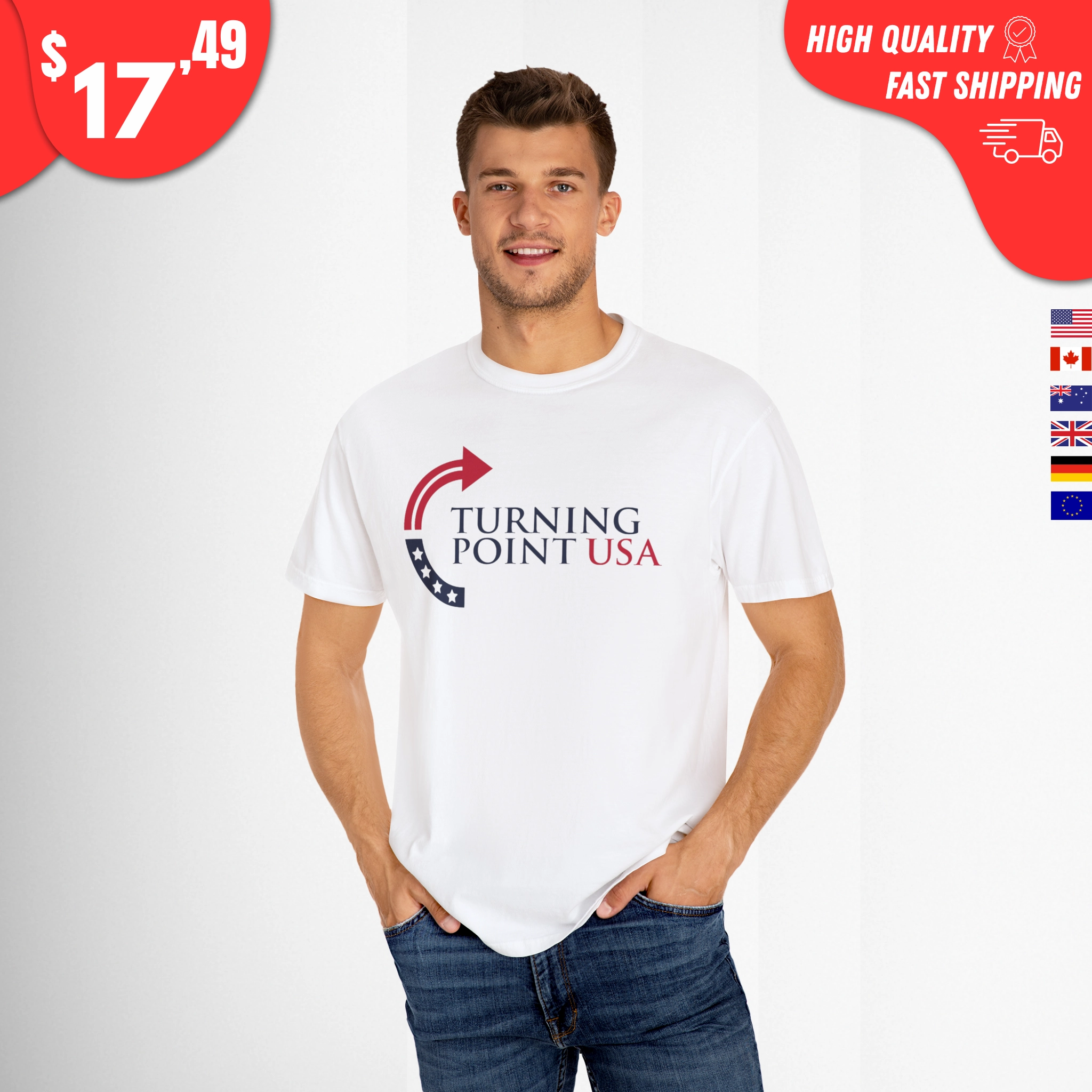 This shirt features a sharp design inspired by Turning Point USA, making it the perfect pick for rallies, campus events, debates, or just casual everyday wear. It’s more than just a t-shirt – it’s a symbol of your stance for freedom and individual rights.