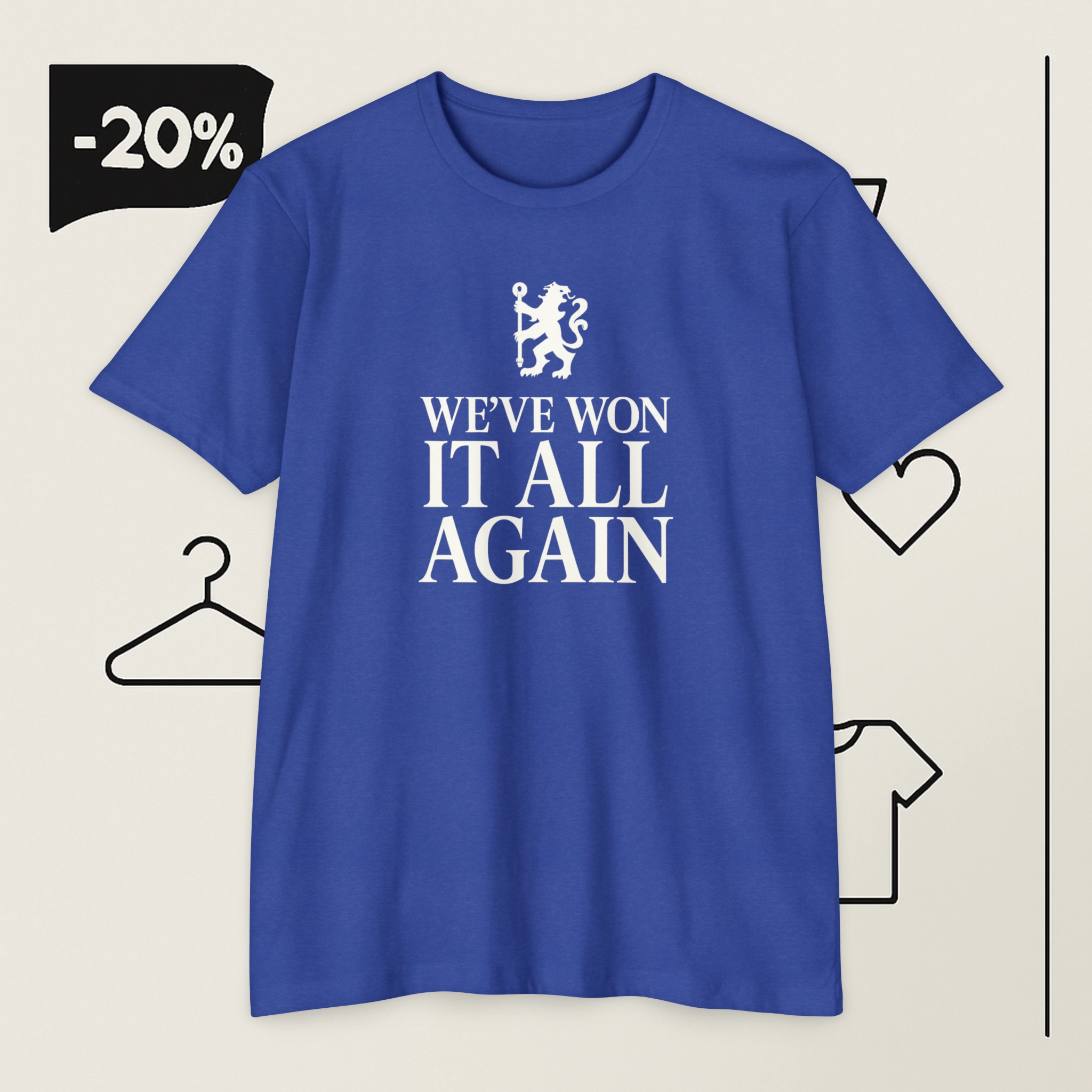 Don’t miss out on owning a piece of Chelsea FC’s legacy. Order your We’ve Won It All Again Chelsea FC Shirt today and wear your pride on your sleeve!