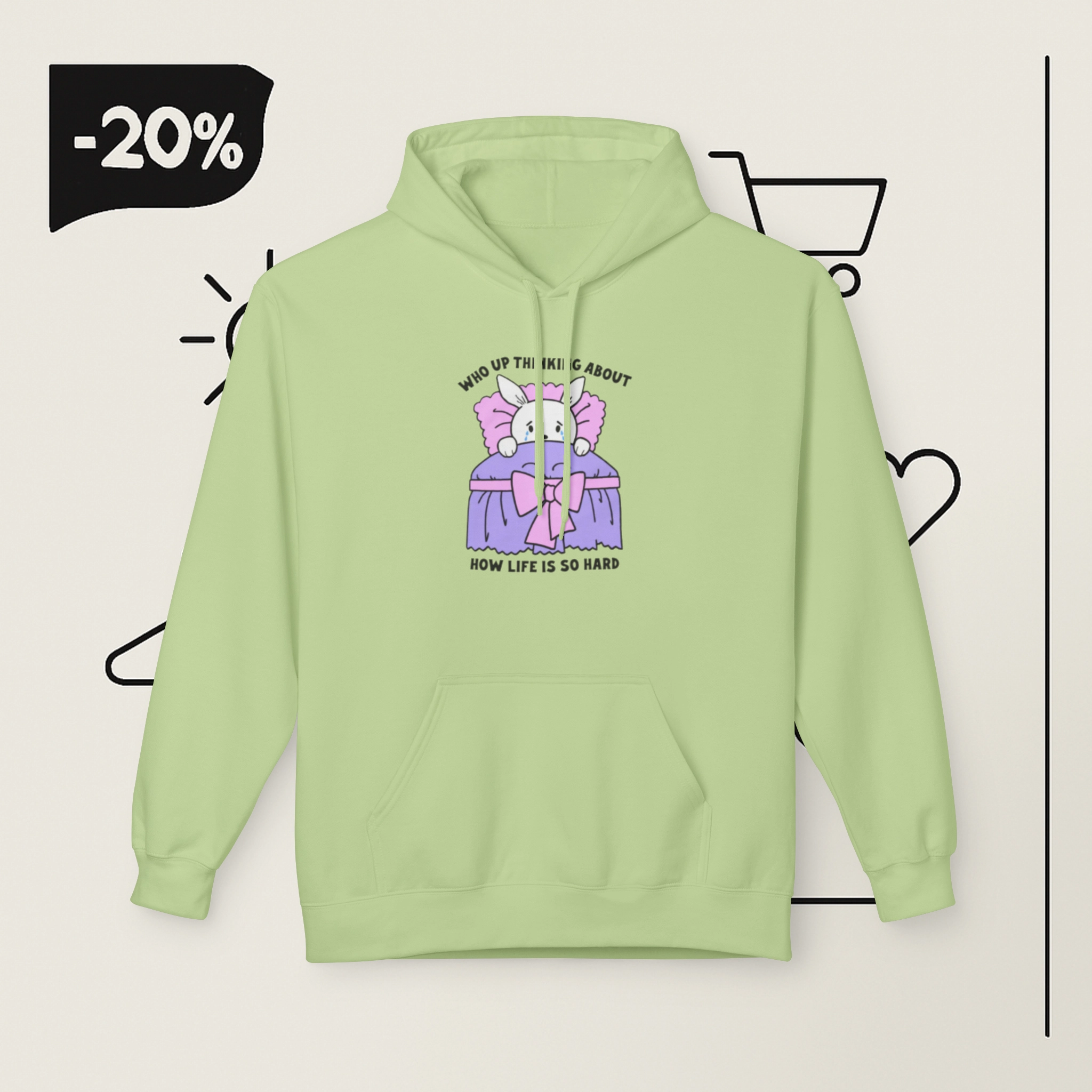 Design: Features the phrase “Who Up Thinking About How Life Is So Hard” in a bold, eye-catching font.