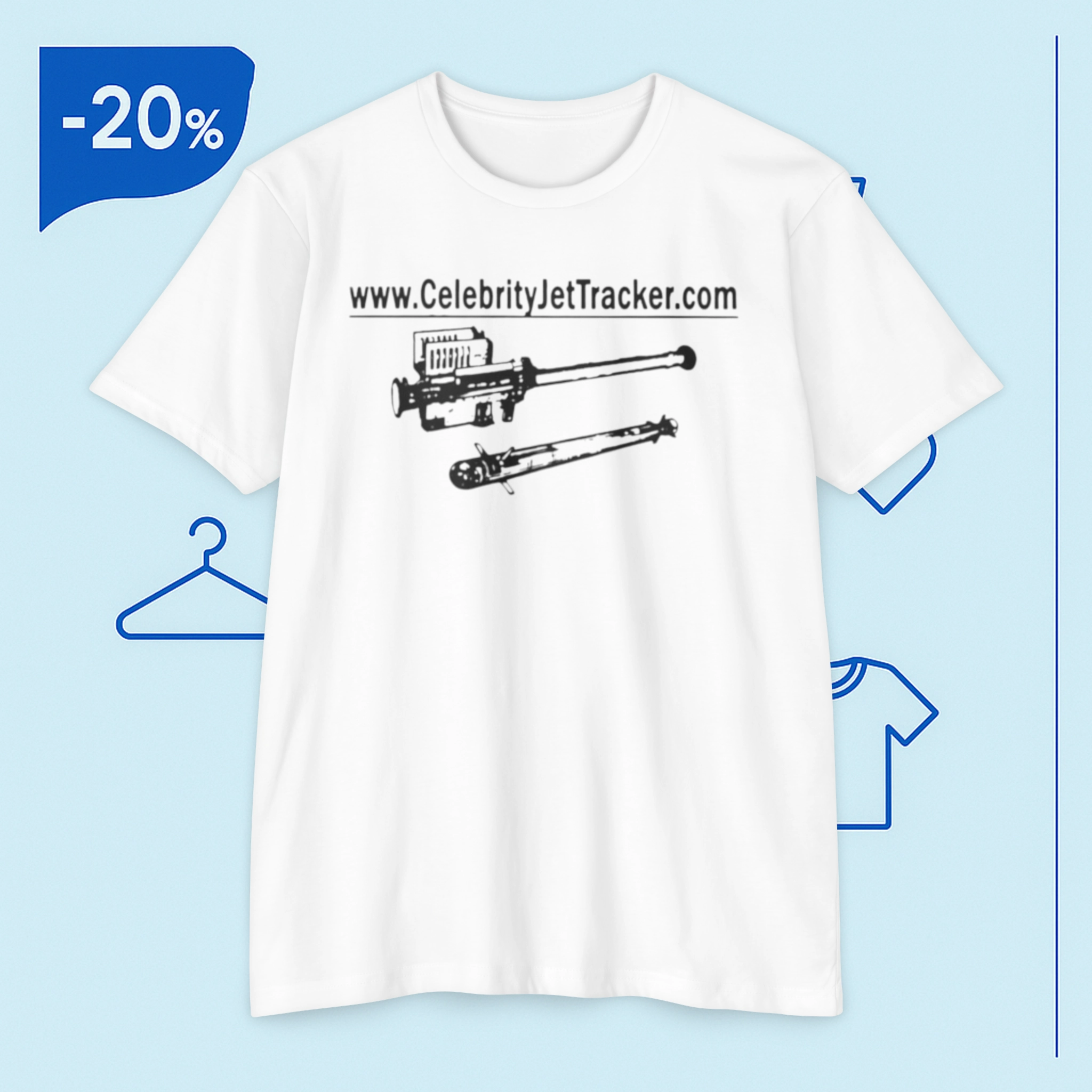 Featuring the bold “Www.CelebrityJetTracker.com” logo, this shirt is more than just apparel—it’s a conversation starter. Whether you’re discussing the latest celebrity sightings or the environmental impact of private flights, this tee puts you at the center of the dialogue.