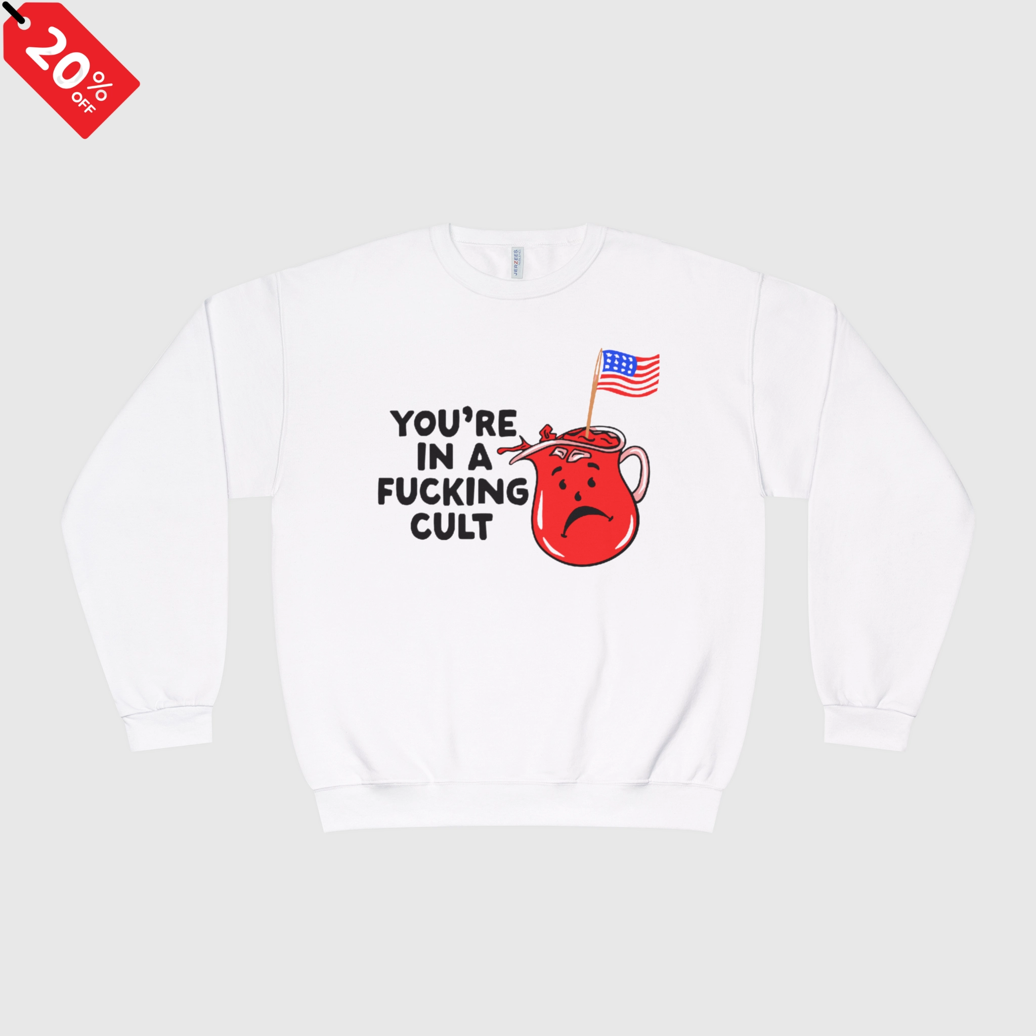 Design: Features the unapologetic phrase “You’re In A Fucking Cult” in striking typography, making it impossible to ignore.